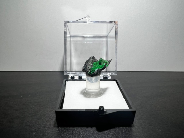 ロシア産のクロム透輝石(クロムダイオプサイド)です。 クロムでグリーンに色付いた透輝石で、タンザニア産のものと比べても遥かに濃色のグリーンをしています。 透過光で美しい緑を確認することができます。 画像のケースに固定してお届けいたします。 産地のラベルが付属いたします。 産地 : Inagli chrome diopside deposit, Russia サイズ : 14mm×12mm×10mm