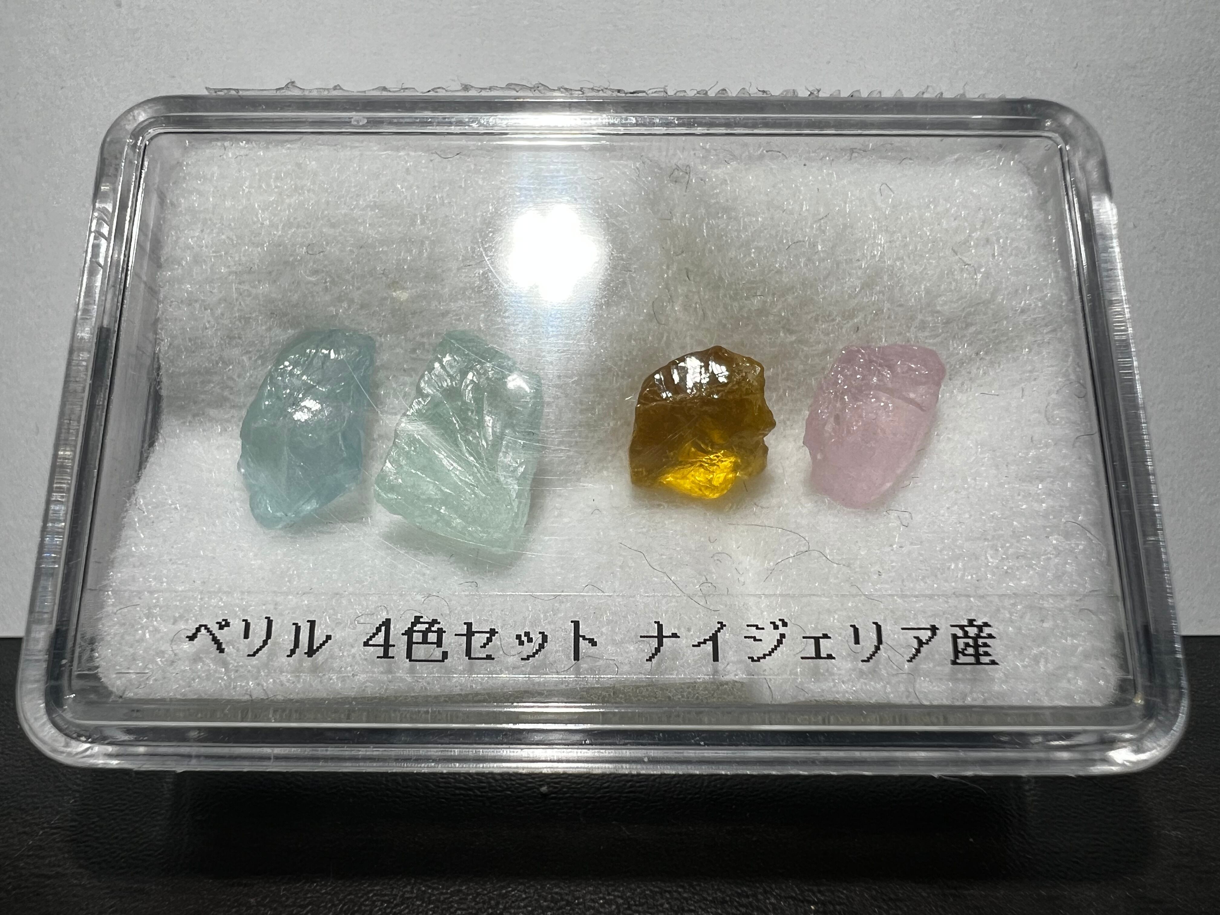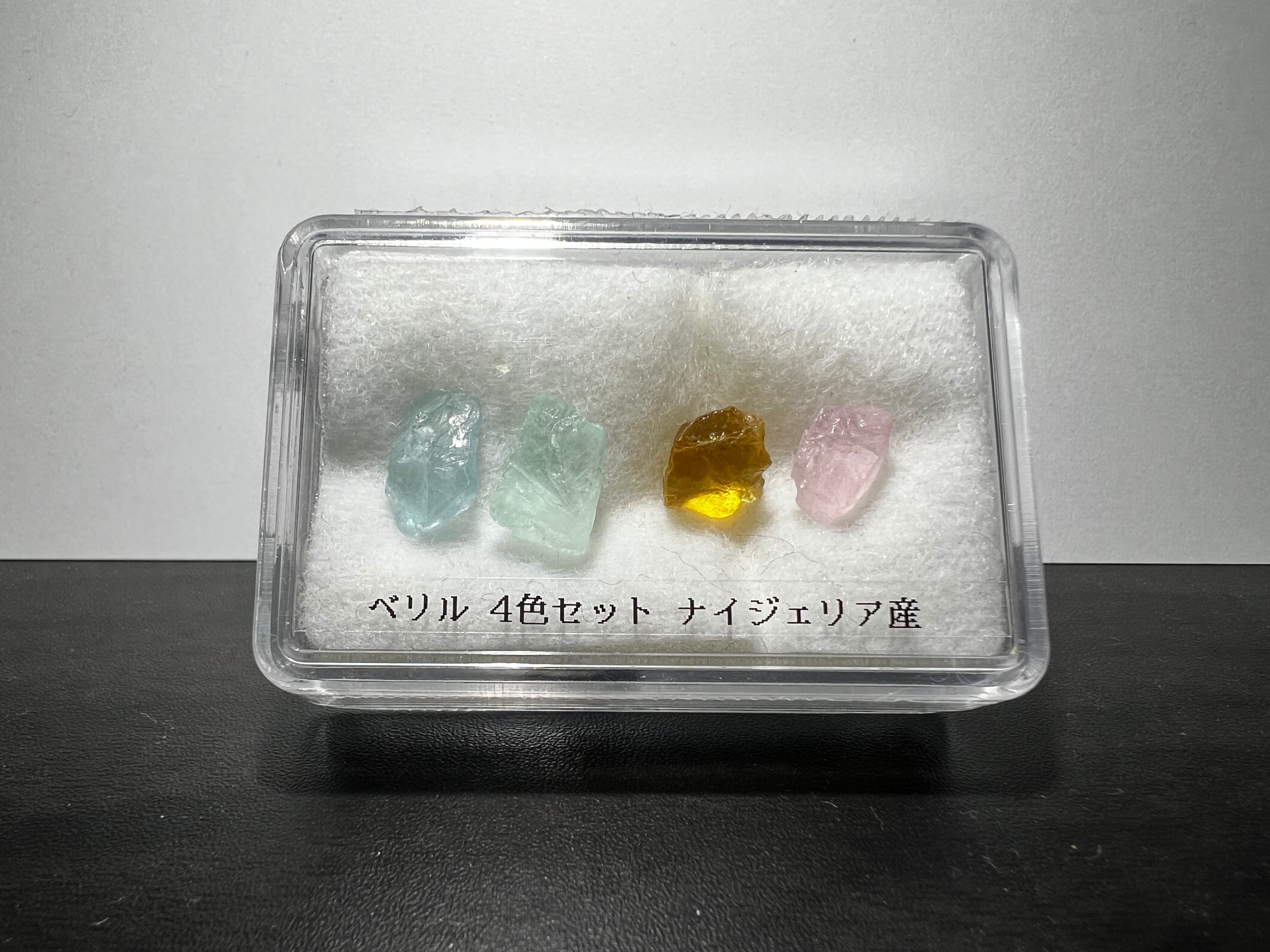 ナイジェリア産の緑柱石(beryl)でカラフルな4色セットです。