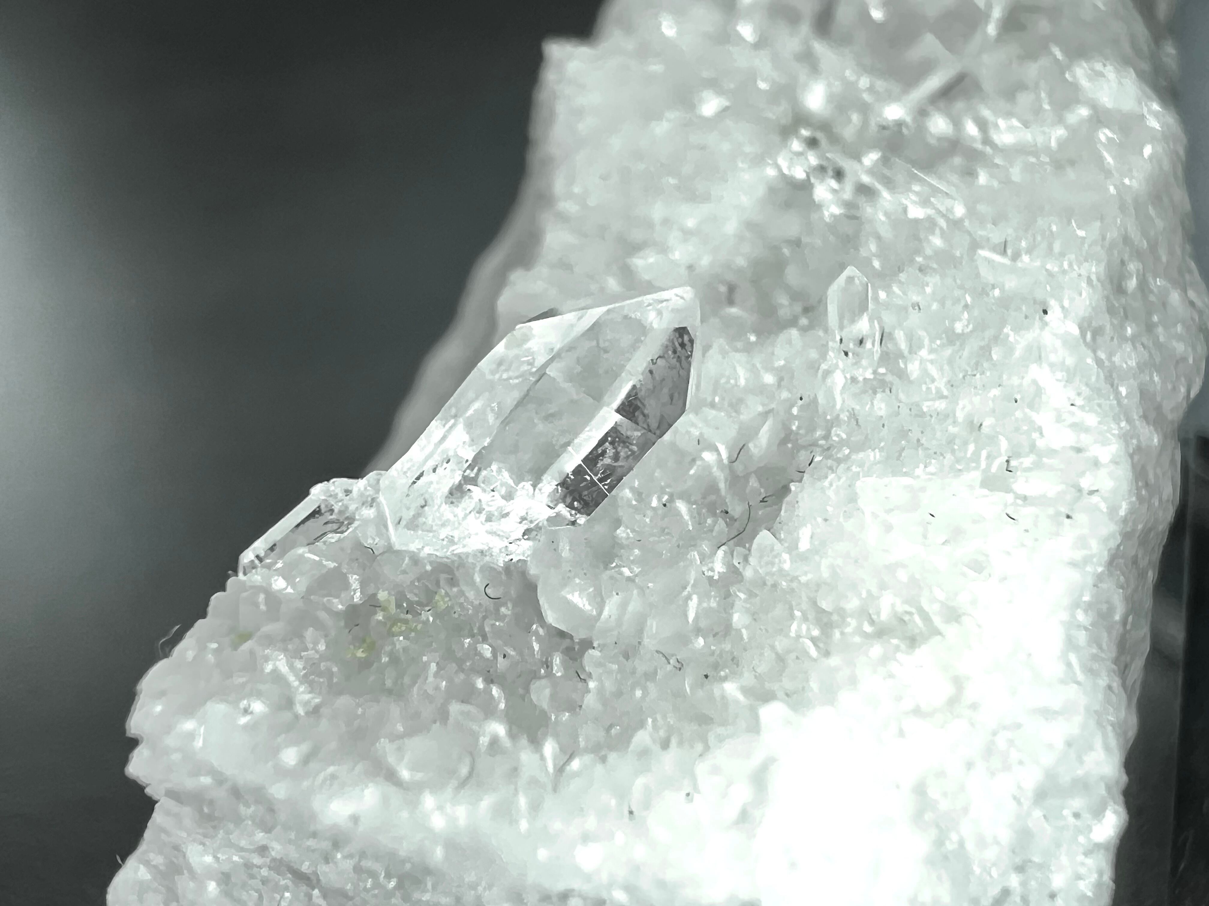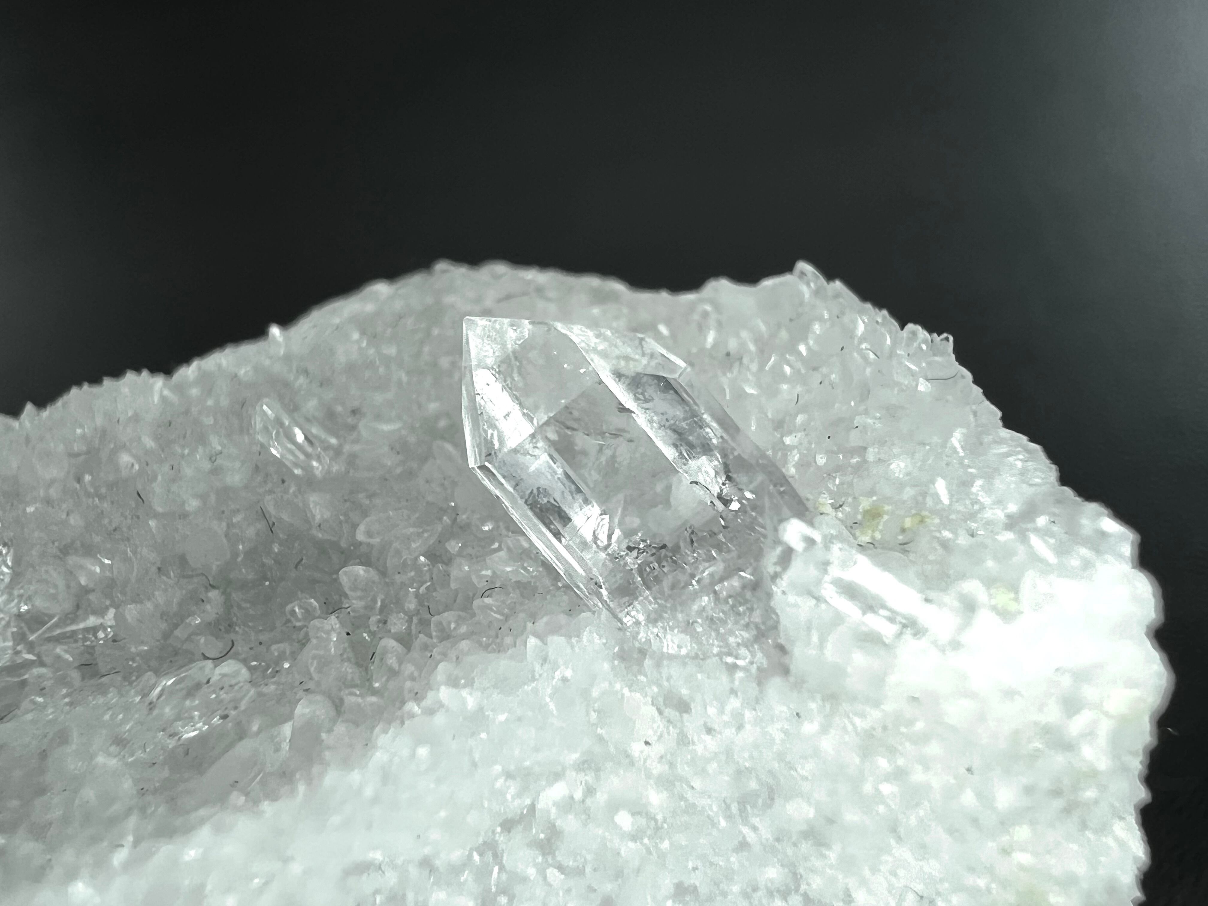 この純白と透明のコンビネーションは他ではまず見られない産状で大変人気があります。