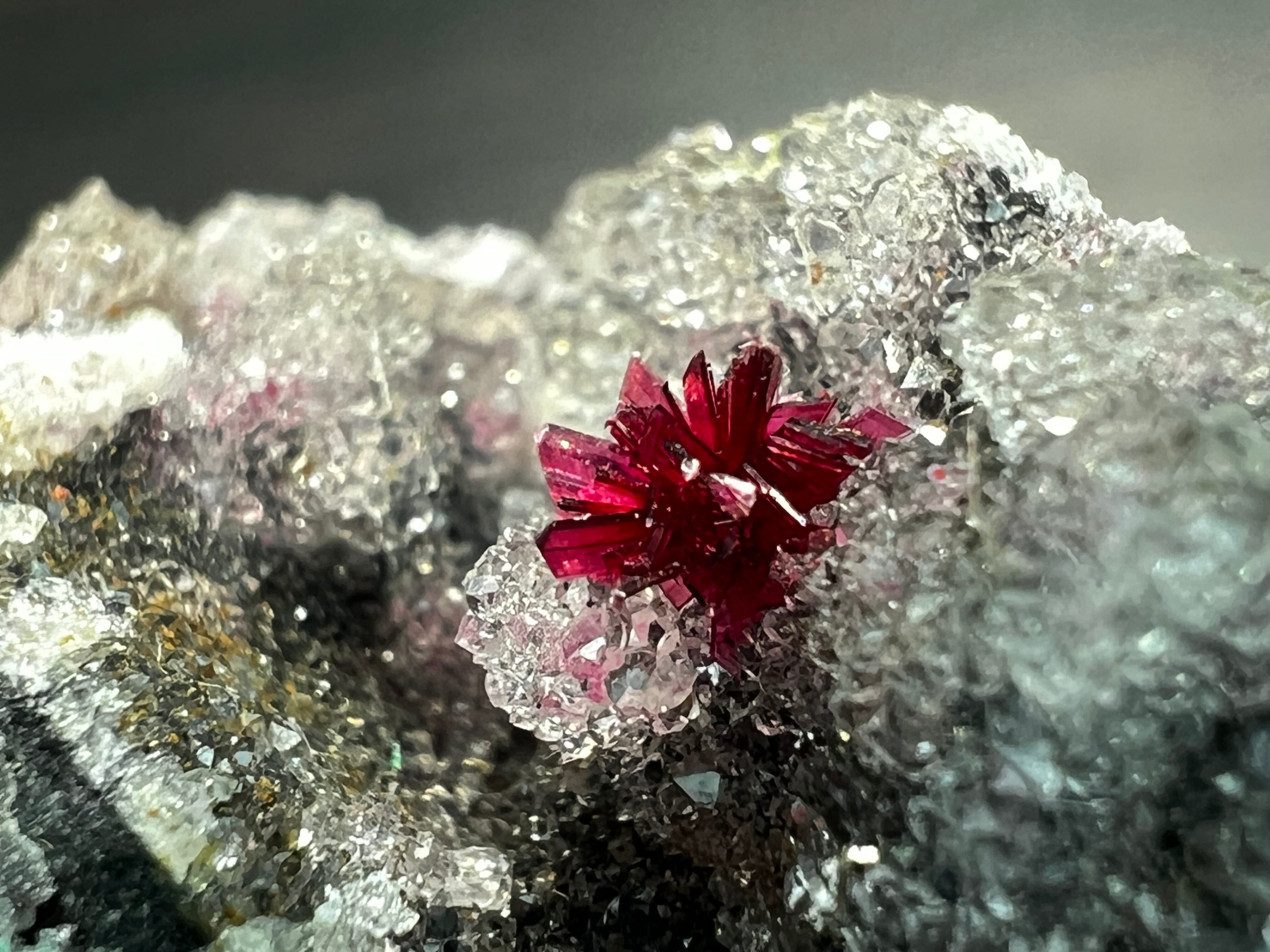 結晶サイズは約4mmと小さいですが花のように広がる整った結晶はなかなか手に入らないと思います。