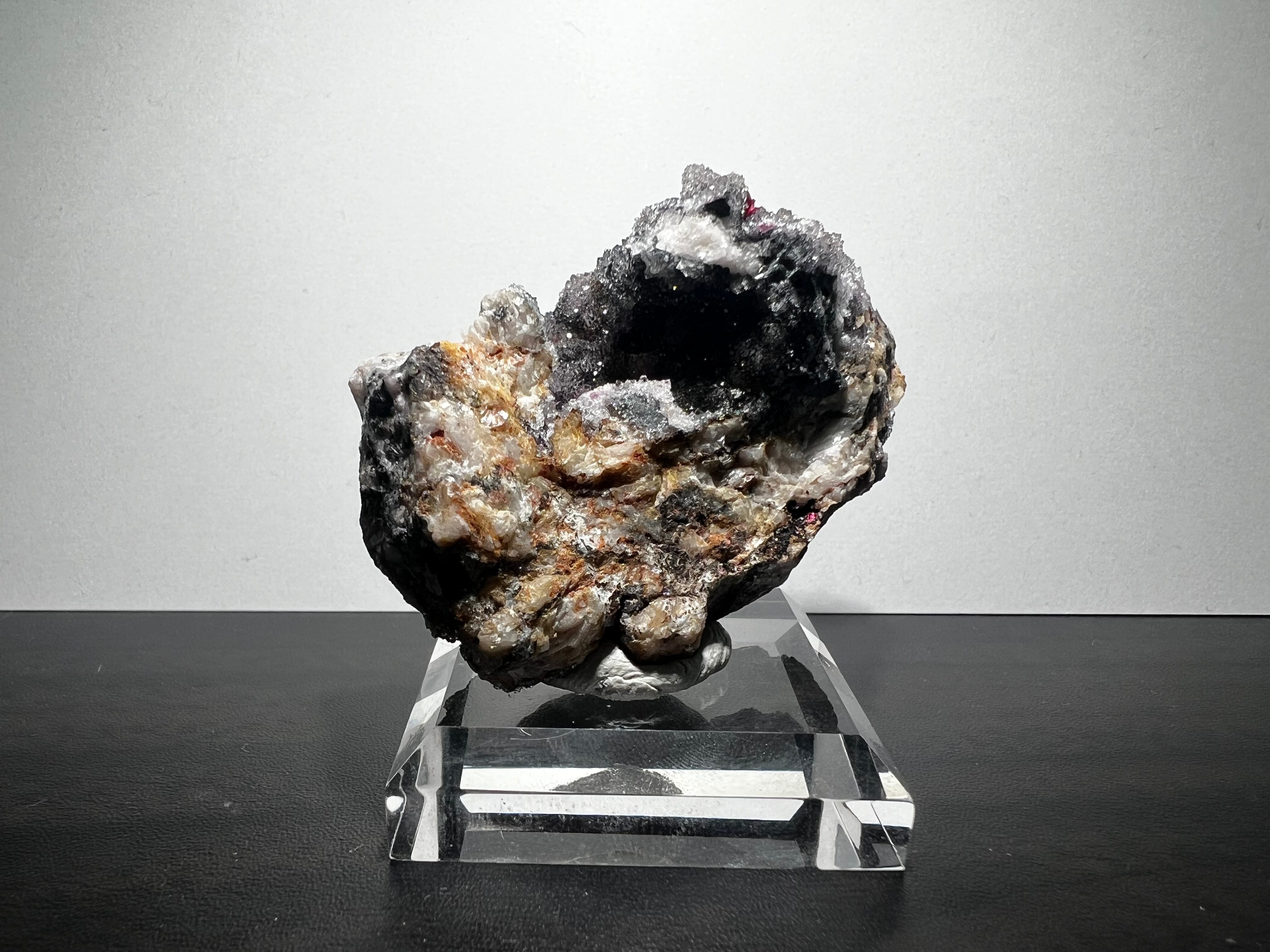 モロッコの有名産地、Bou Azzerのコバルト華(Erythrite)です。キラキラと煌めくクリアなドゥルジー水晶上に非常に美しいコバルト華が咲いています。
