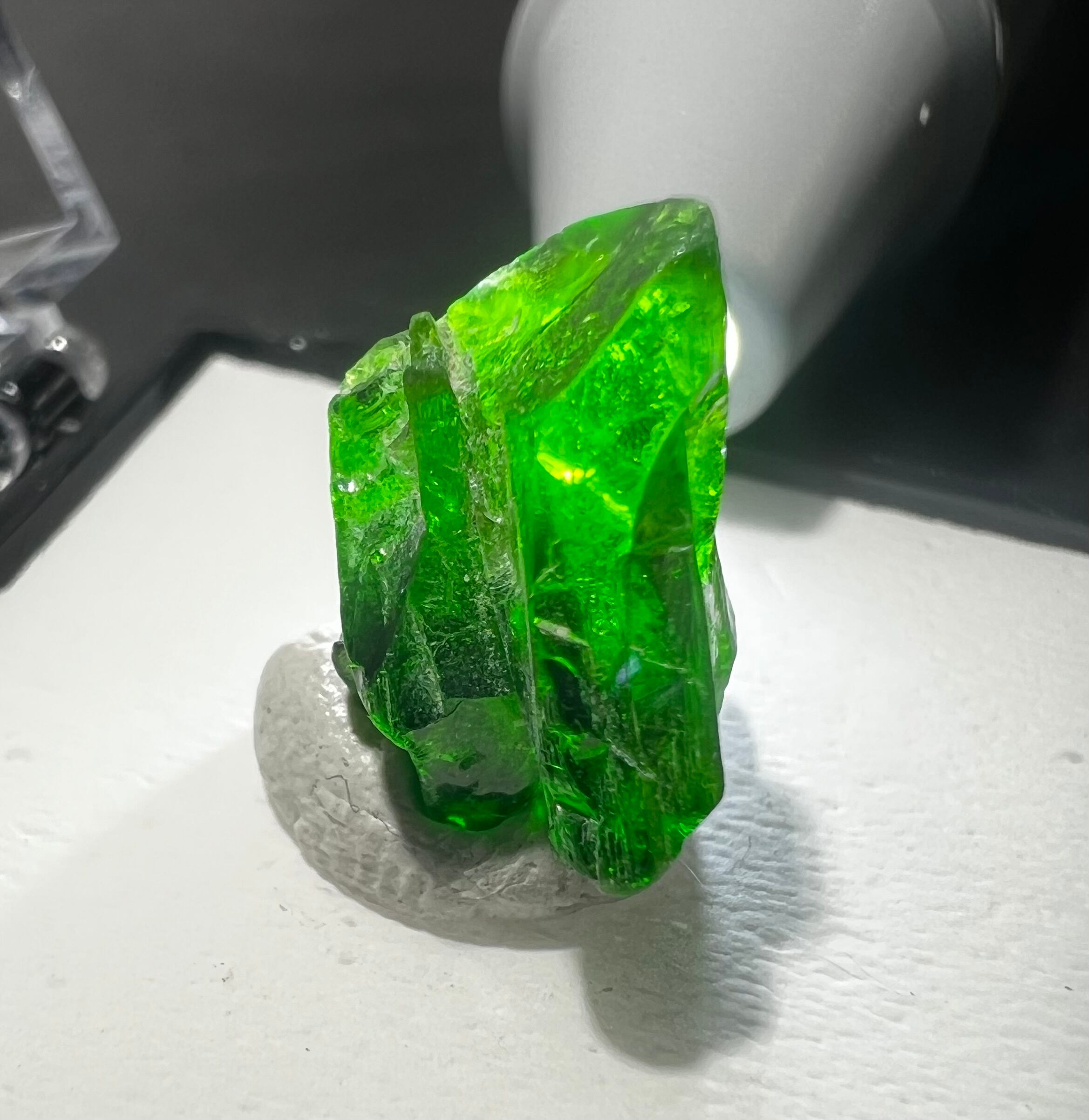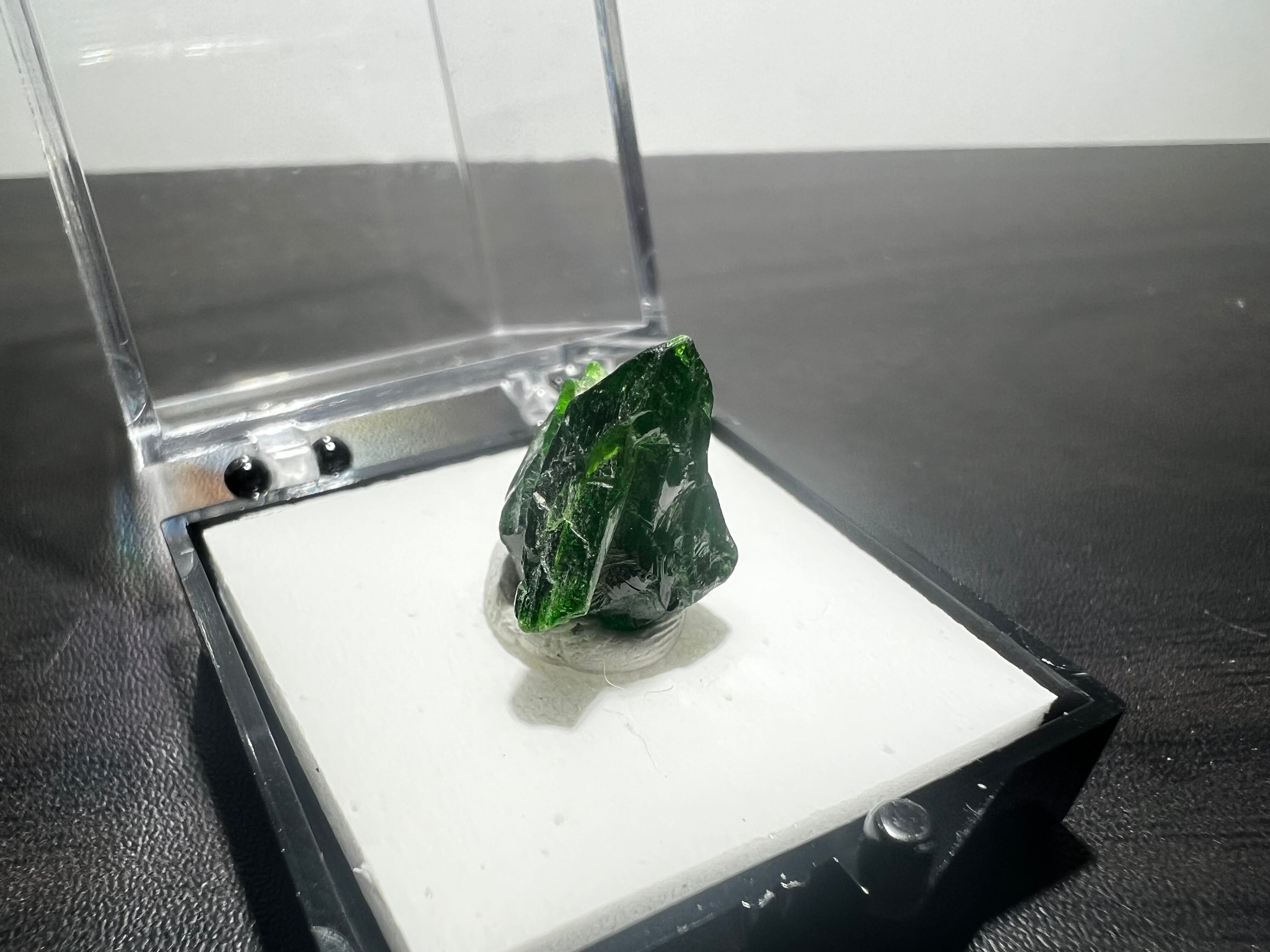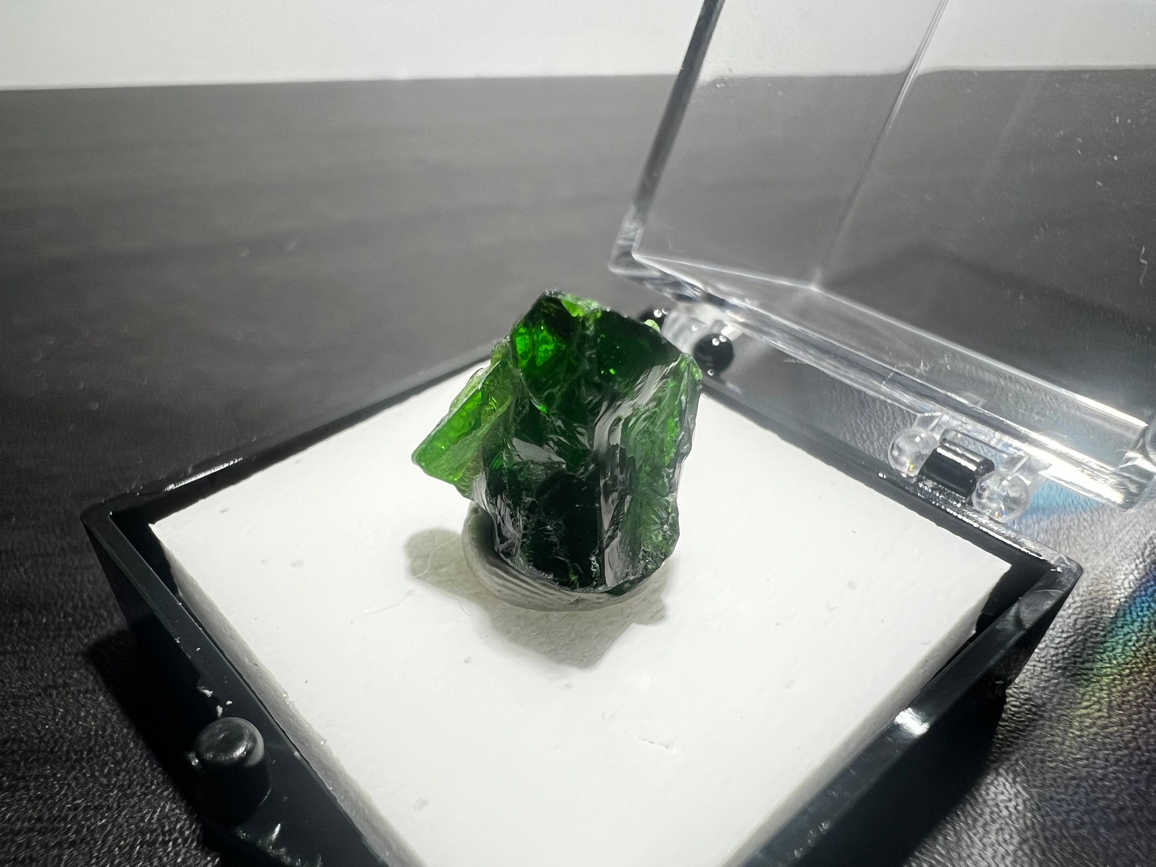 クロムでグリーンに色付いた透輝石で、タンザニア産のものと比べても遥かに濃色のグリーンをしています。