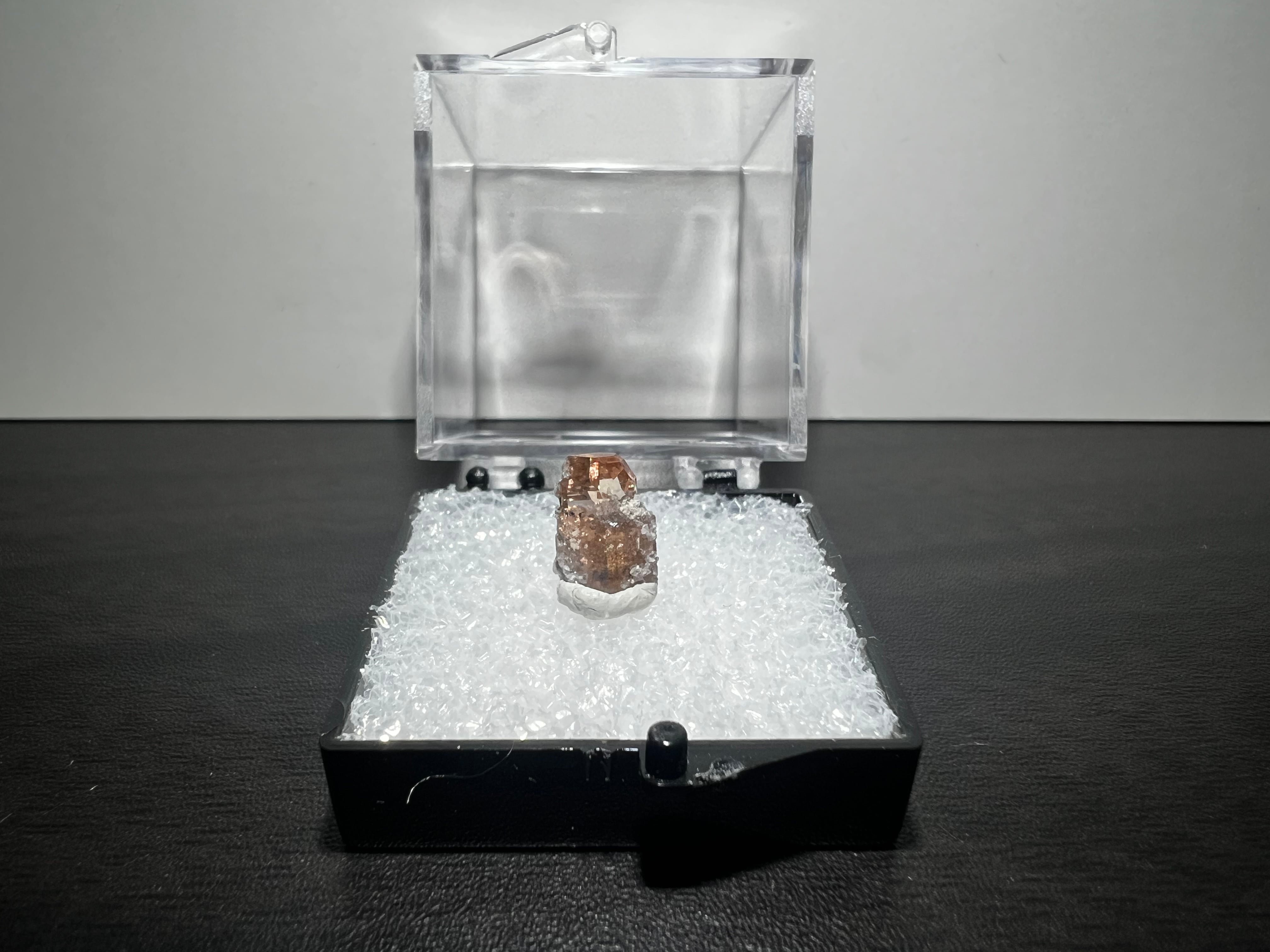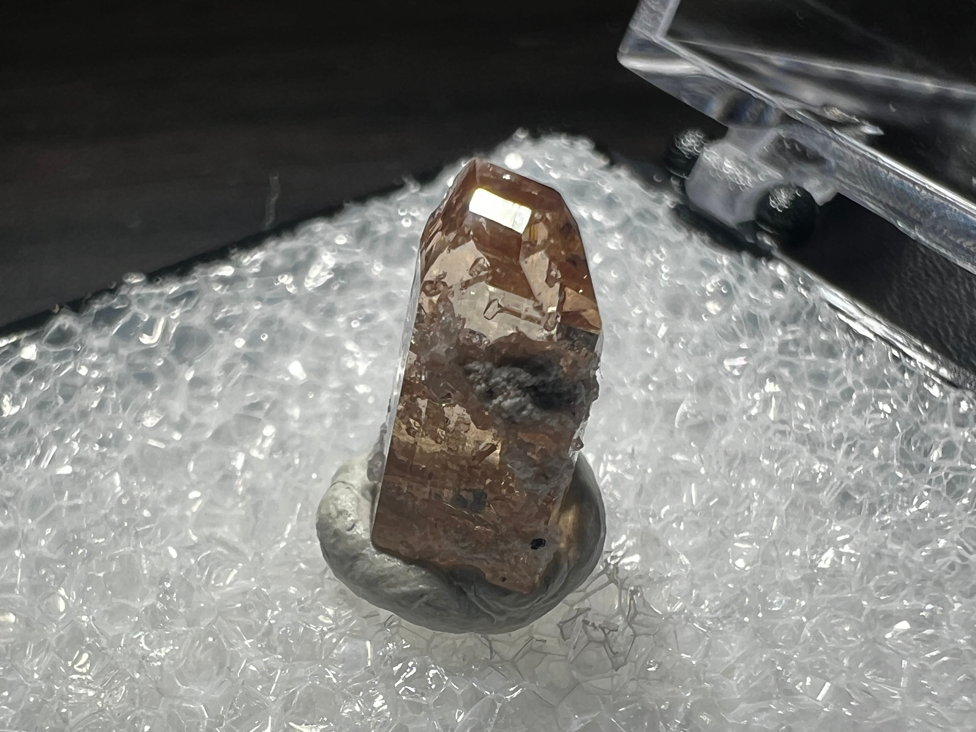 その中でも本品はサイズは小さいですが、淡いシェリー色をしていてカットせずとも宝石と言えるような照りと透明度がある分離結晶だと思います。
