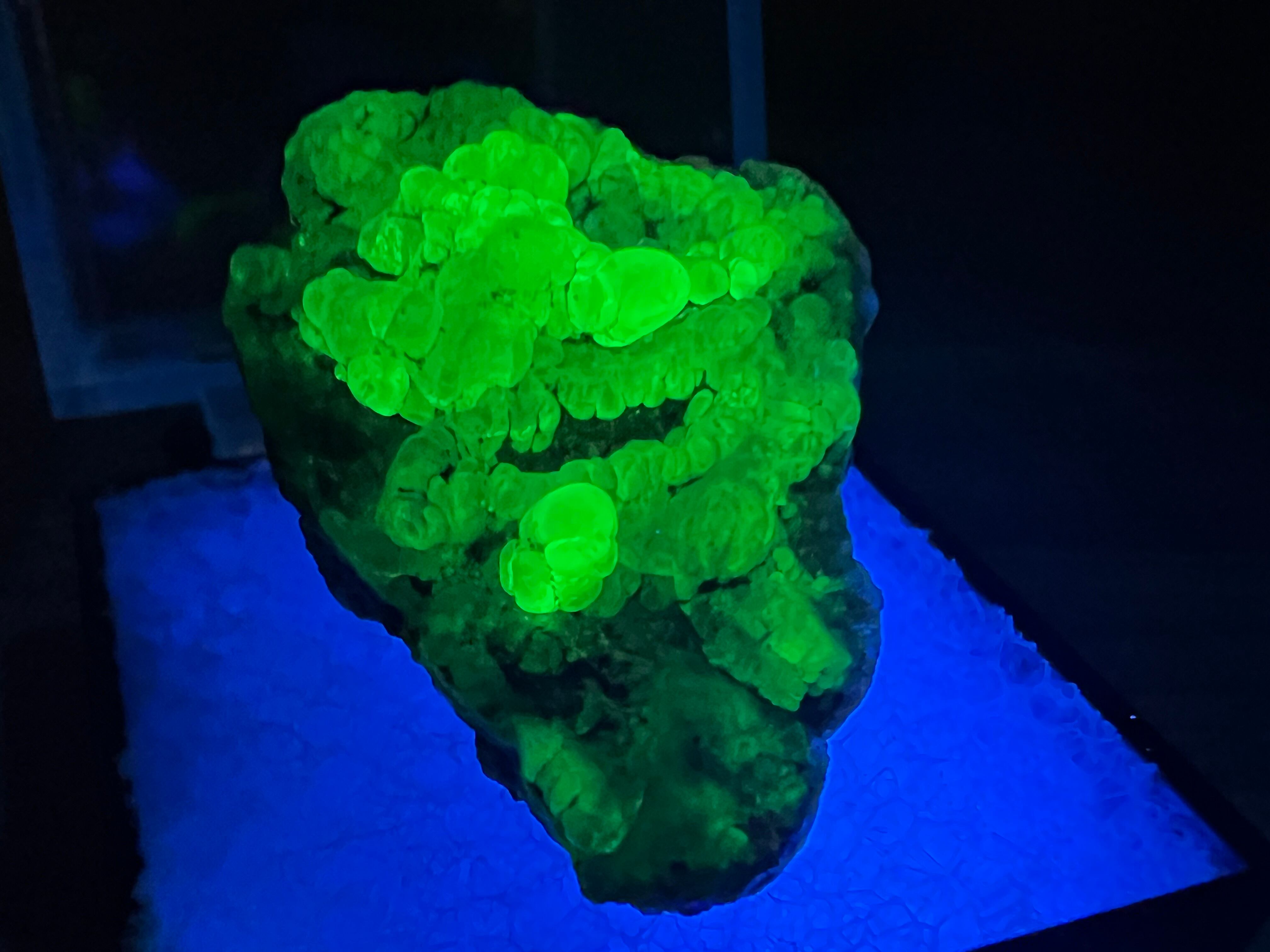 ハンガリー産など短波UVでのみ蛍光するものもありますが、こちらは長波UVで蛍光いたします。