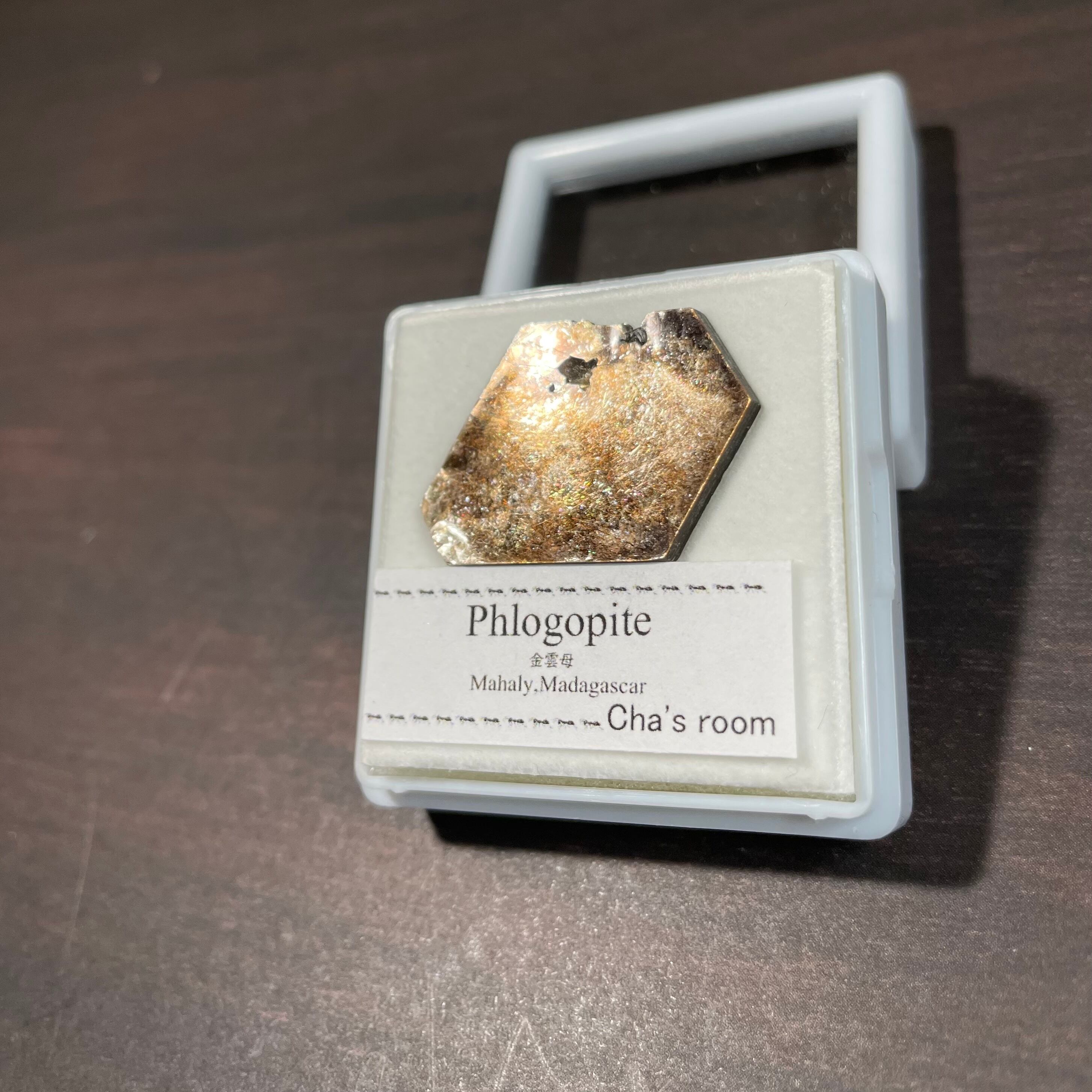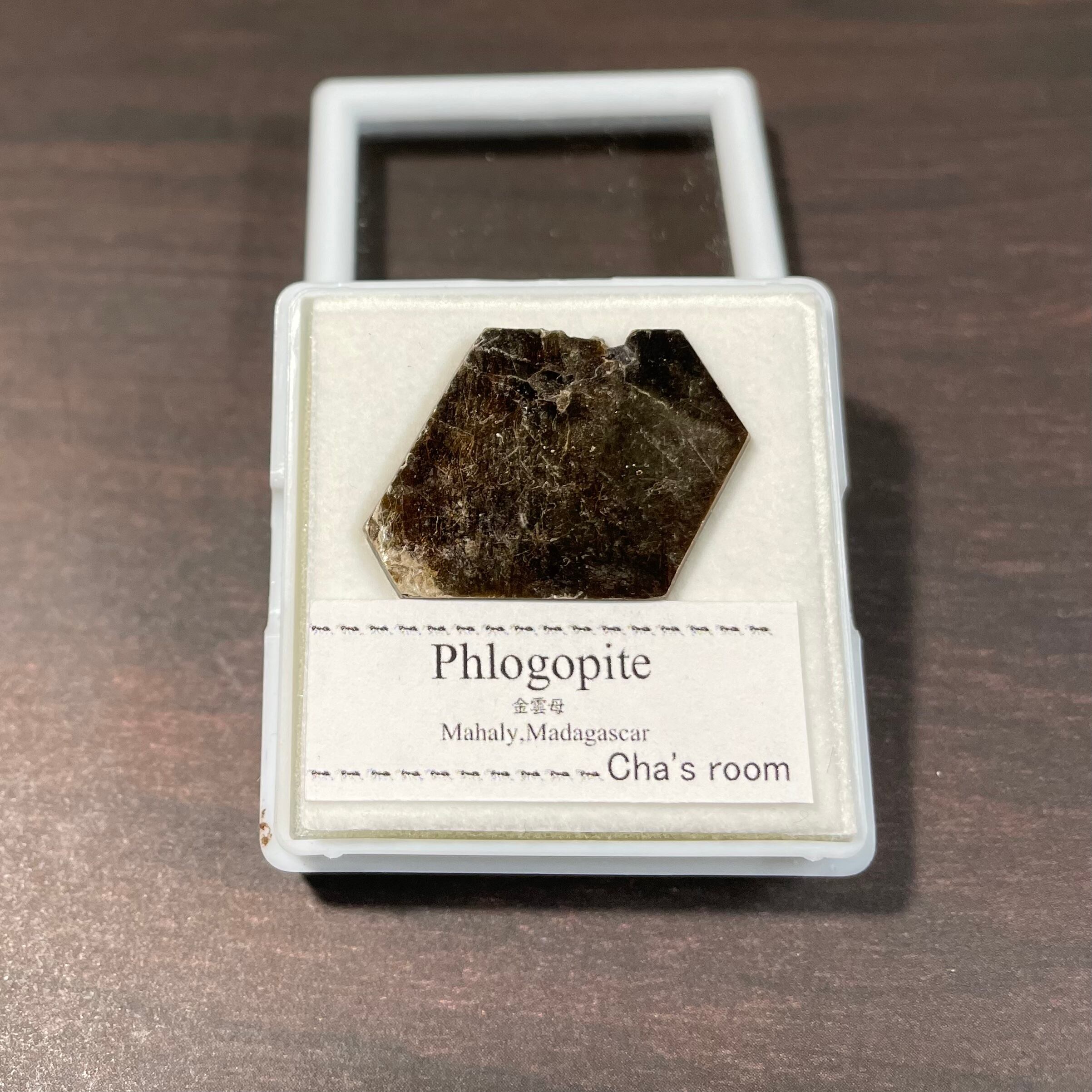 黒雲母に良く似ていますが、横から見ると金色に反射して違いがわかります。また黒雲母と違い、こちらはちゃんとした独立種です。