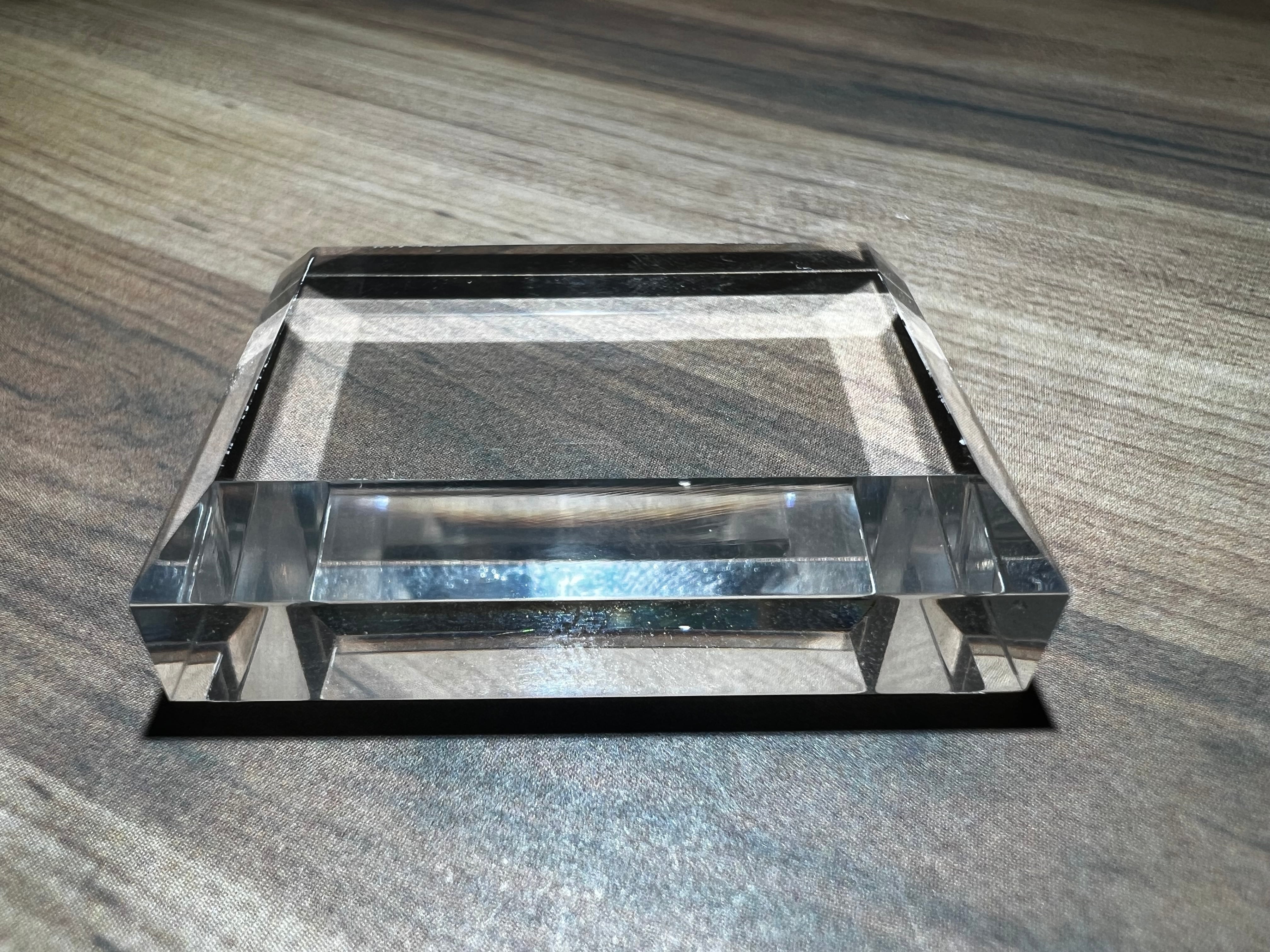 透明度が高い高品質のアクリルブロックで、ワイドタイプの天面面取り加工されたものです。