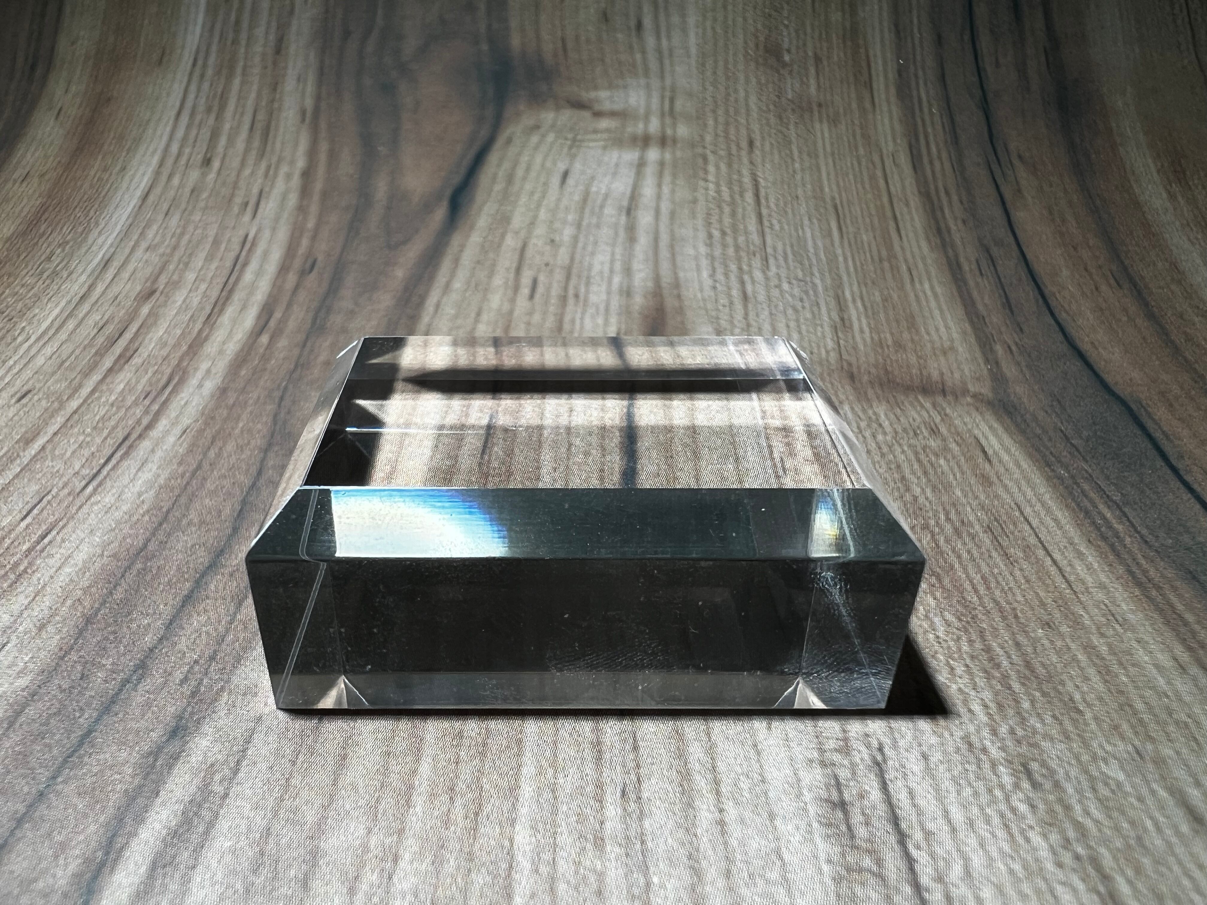 透明度が高い高品質のアクリルブロックで、ワイドタイプの天面面取り加工されたものです。