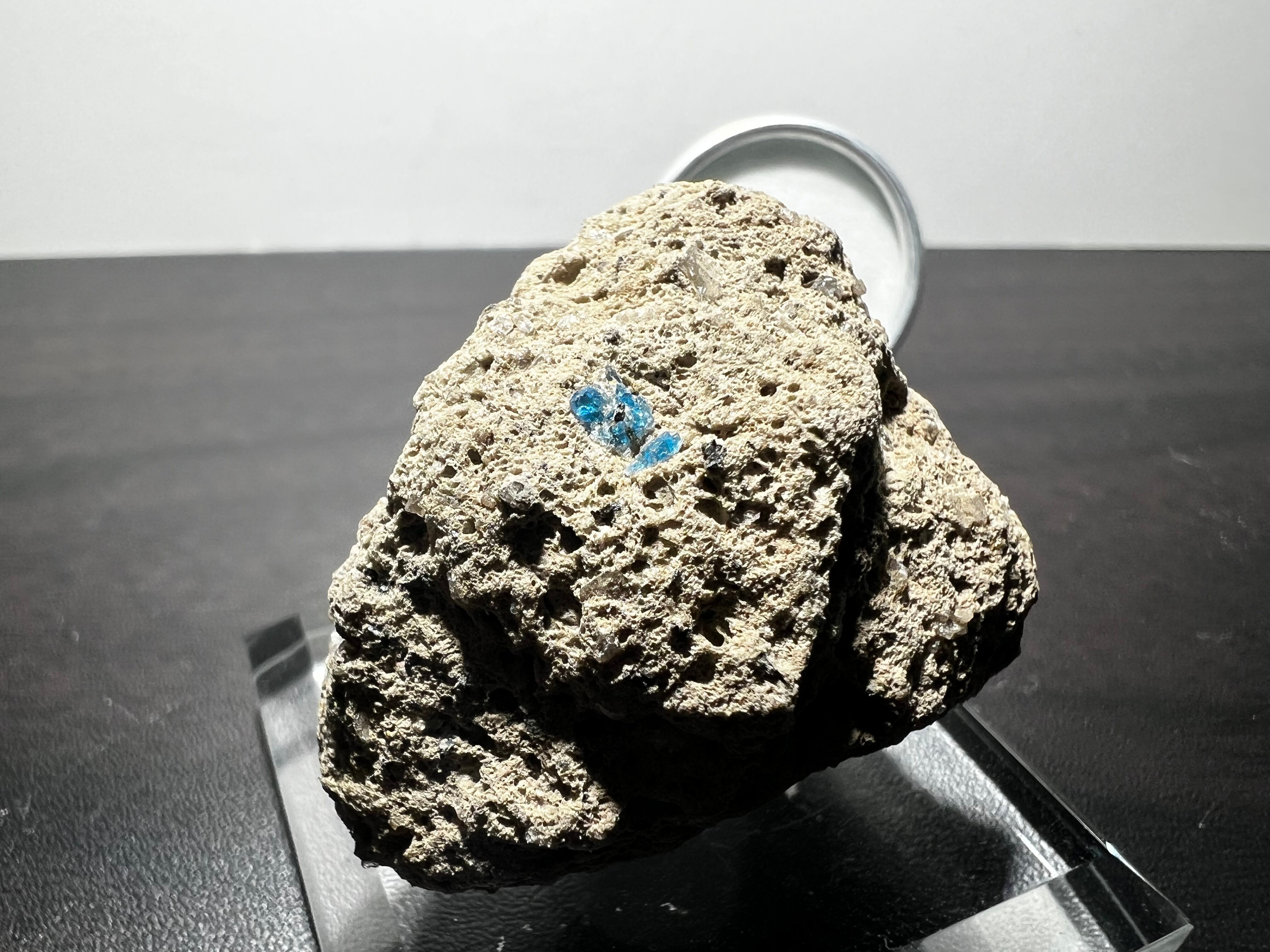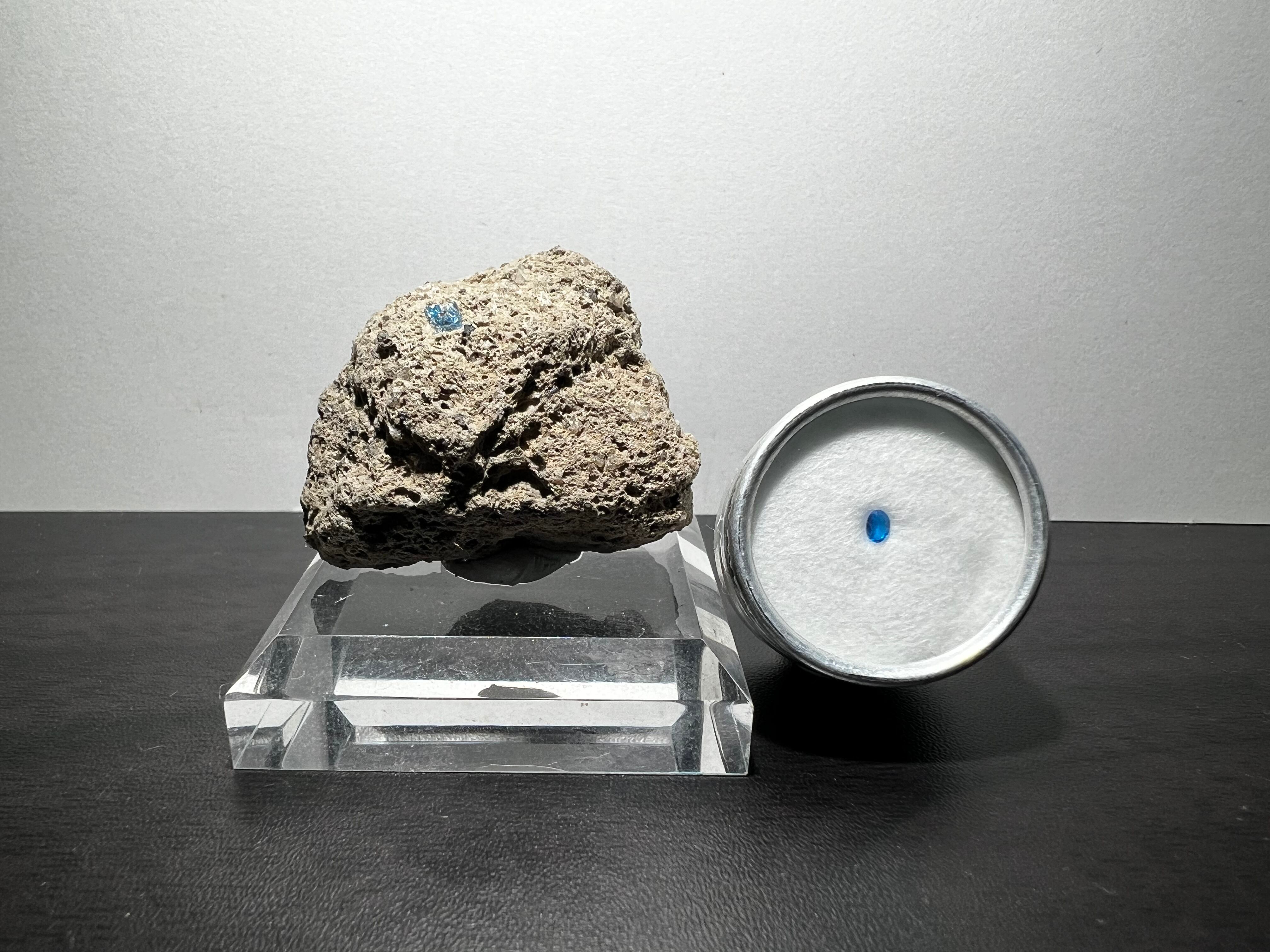 標本の方は小さな粒状で宝石にはなりませんがアウインらしい青さを持ったサンプル的標本となっていて並べて飾ると小さな博物館を彷彿とさせてくれます。