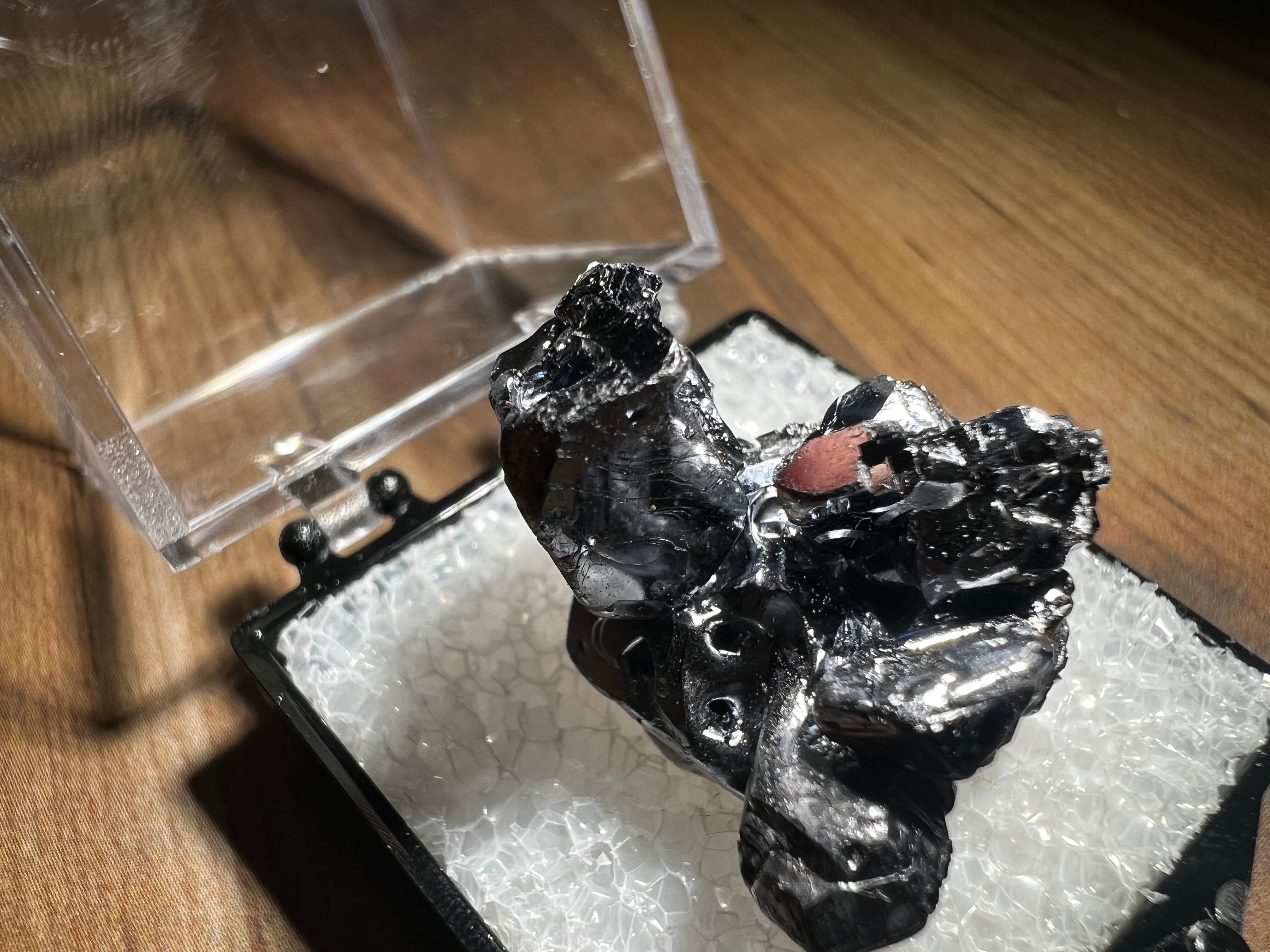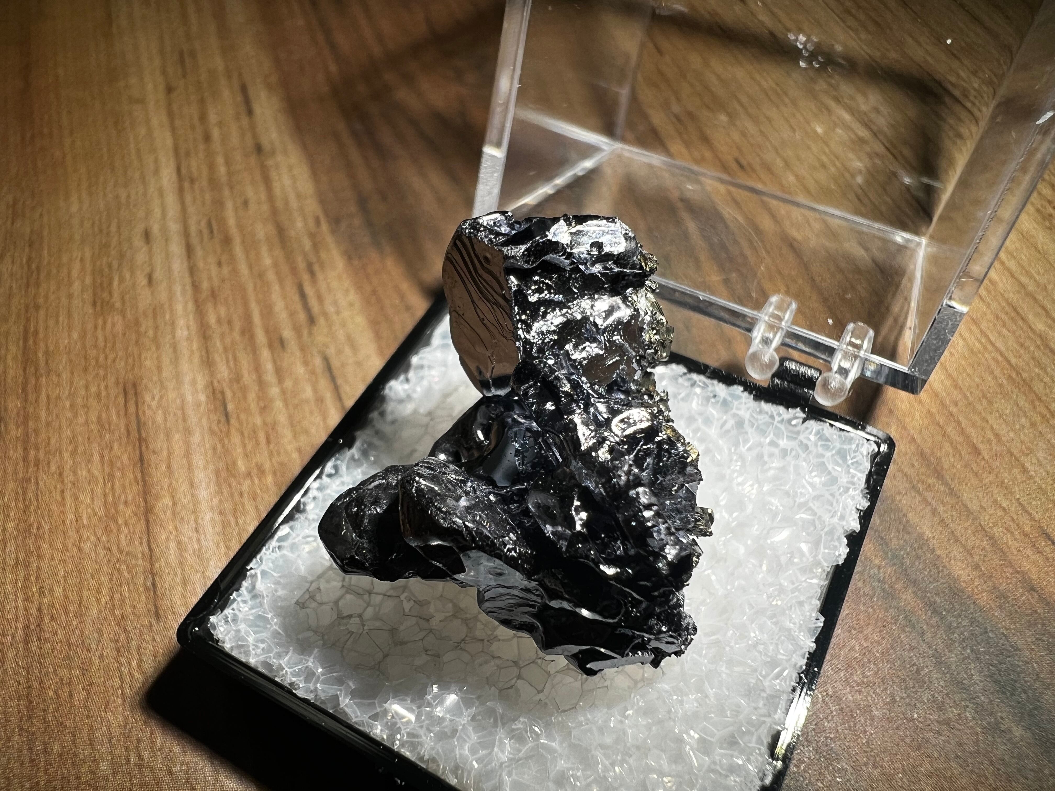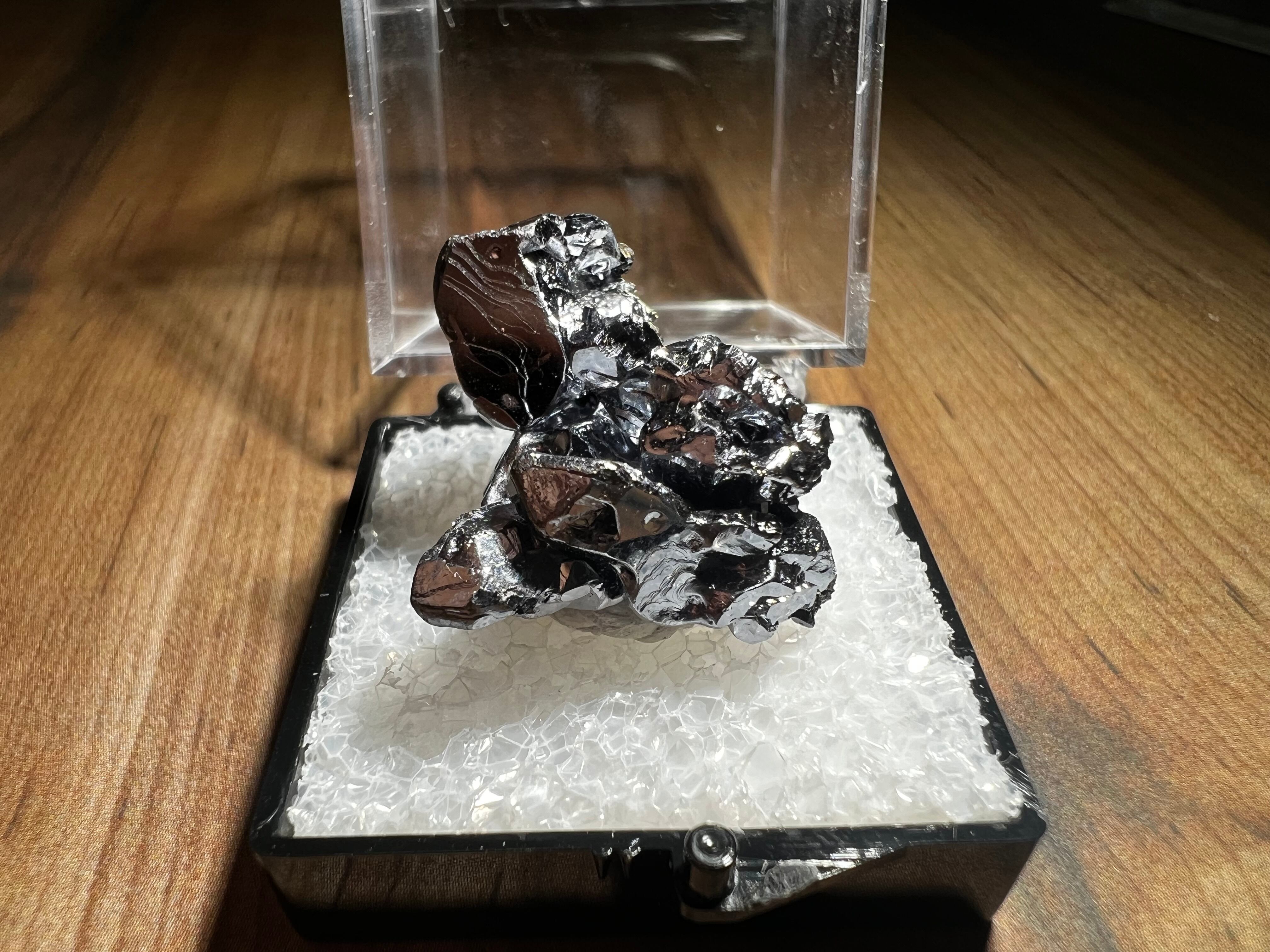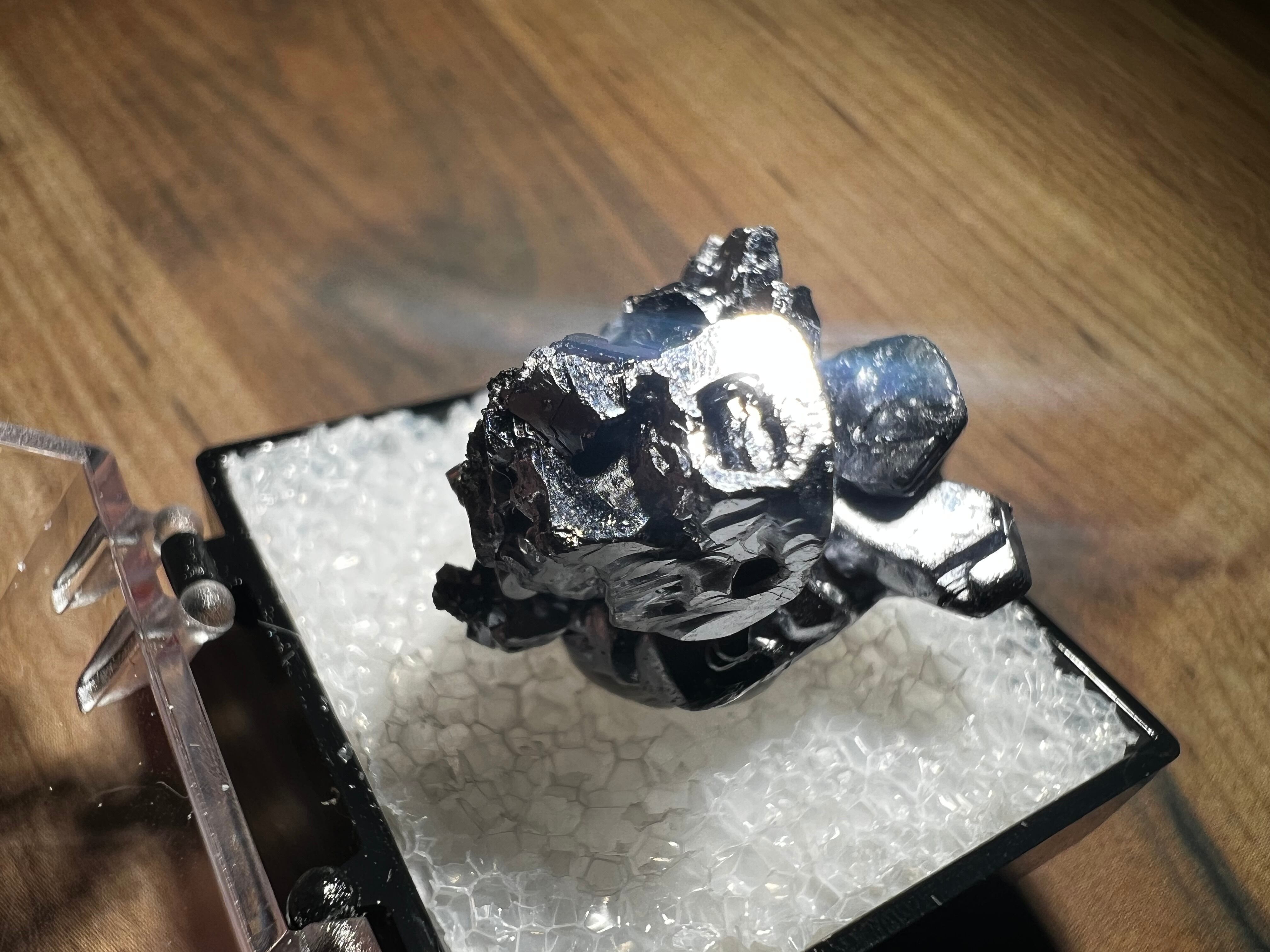 非常に光輝が強く反射してしまうので黒っぽく写ってしまっていますが、鏡のような表面をしています。