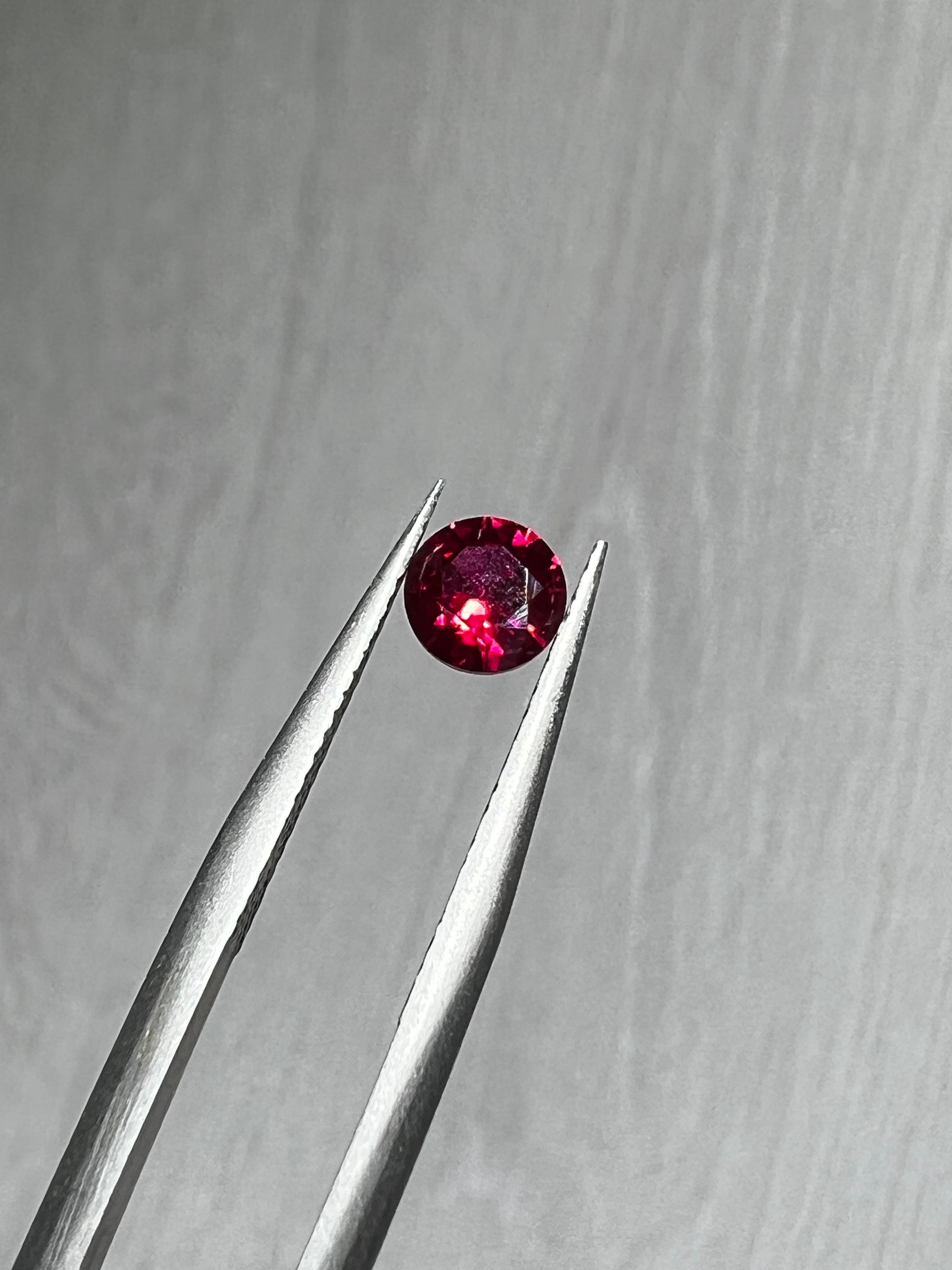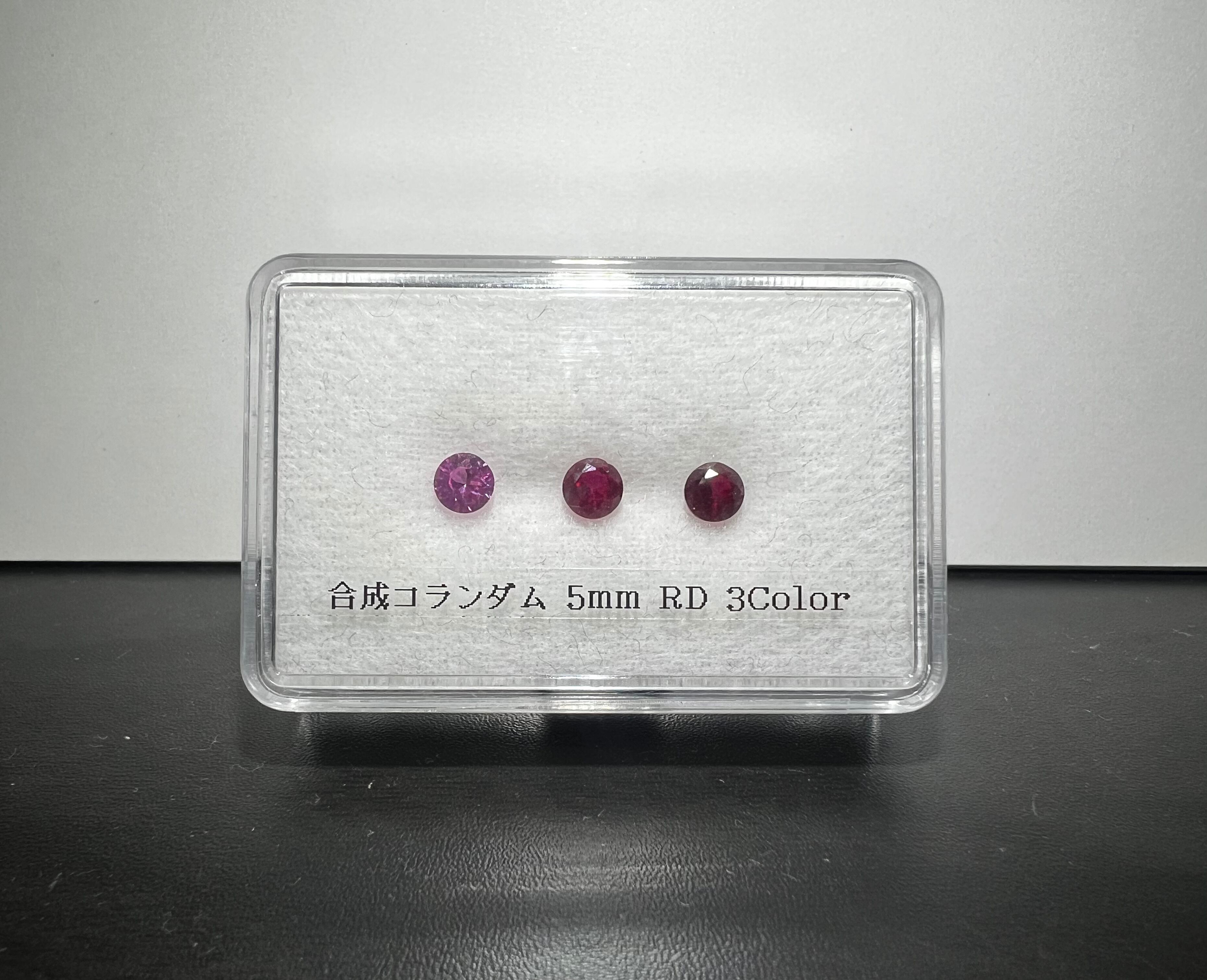 合成コランダム(ルビー)で、5mmのラウンドカット、濃淡のカラーバリエーション3色セットです。